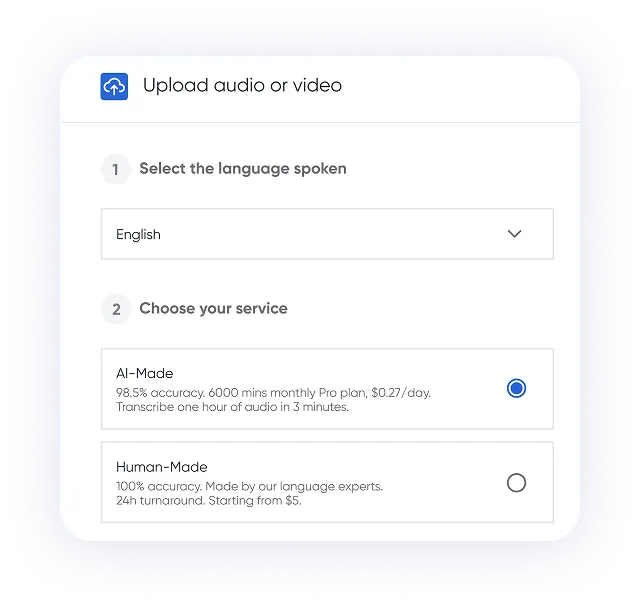 - Export in TXT, SRT, DOC, JSON, and more ready-to-use formats